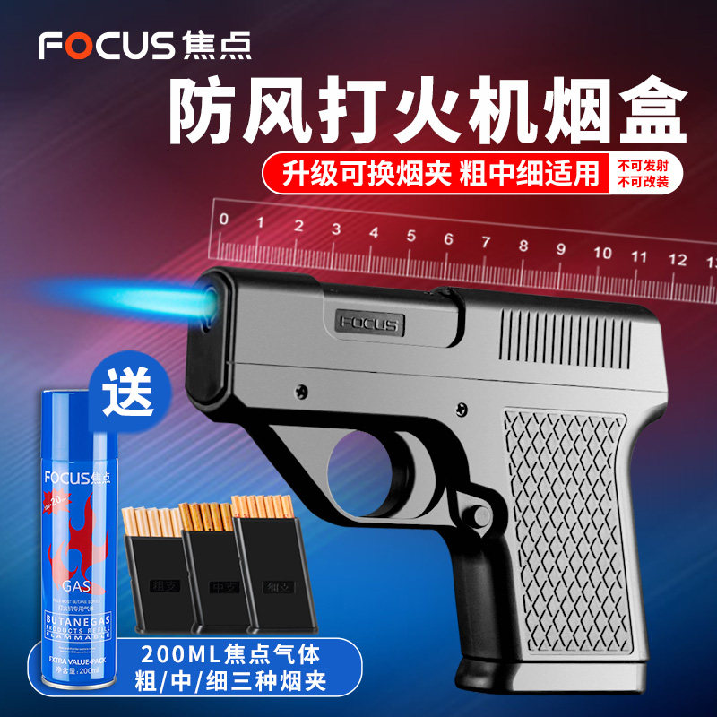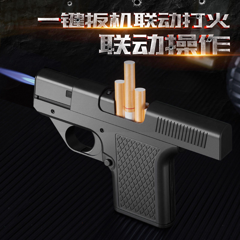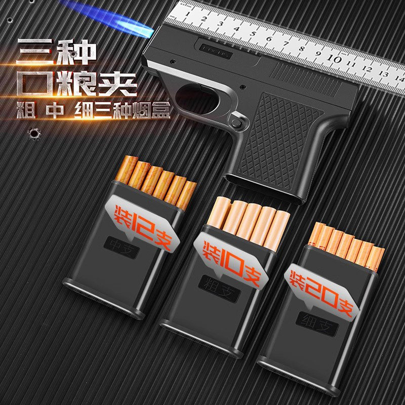天猫手枪打火机烟盒一体防风充气稀奇古怪枪型网红点火器打火枪点火枪