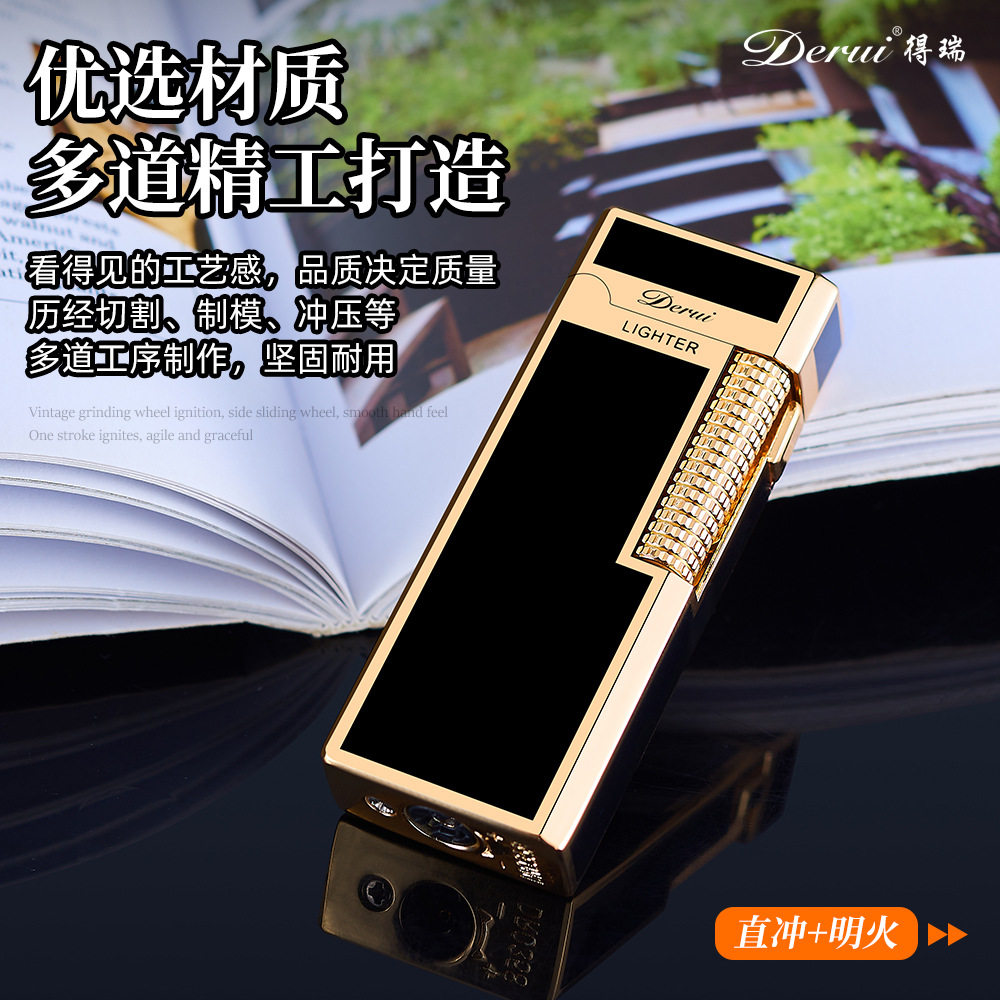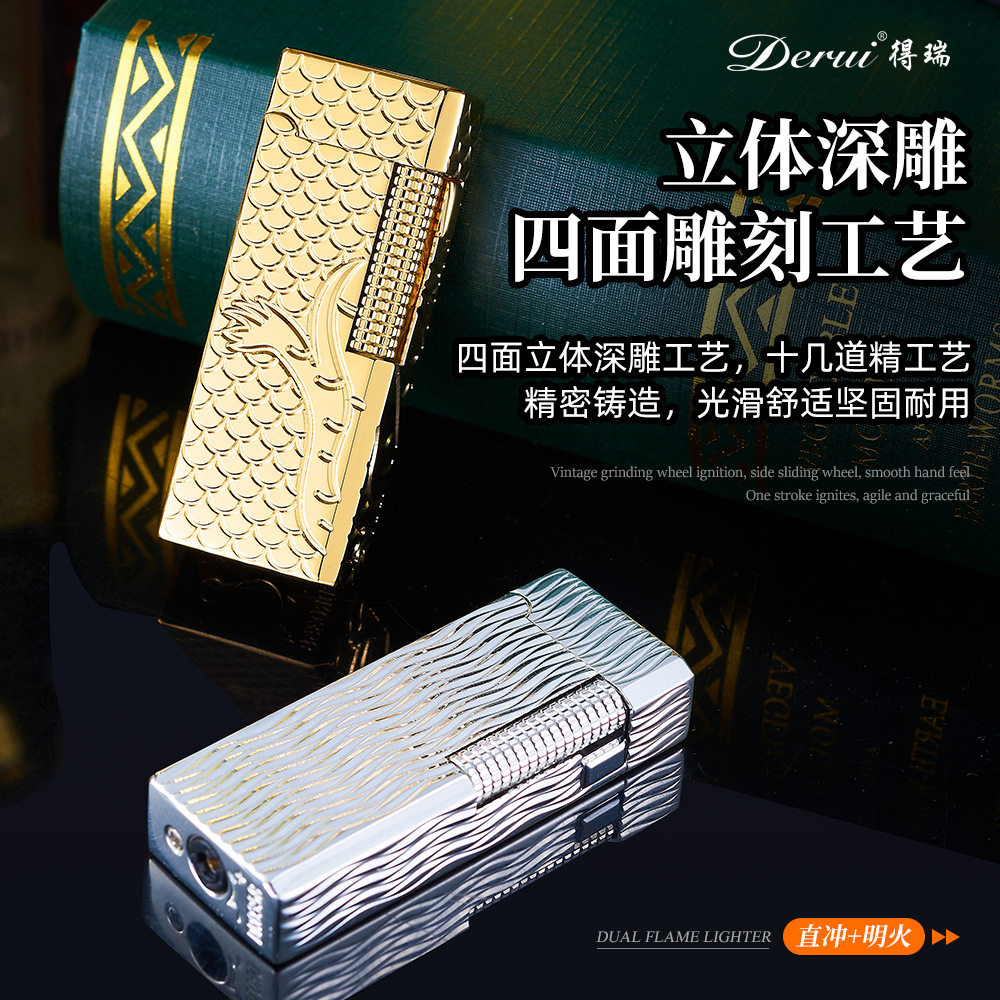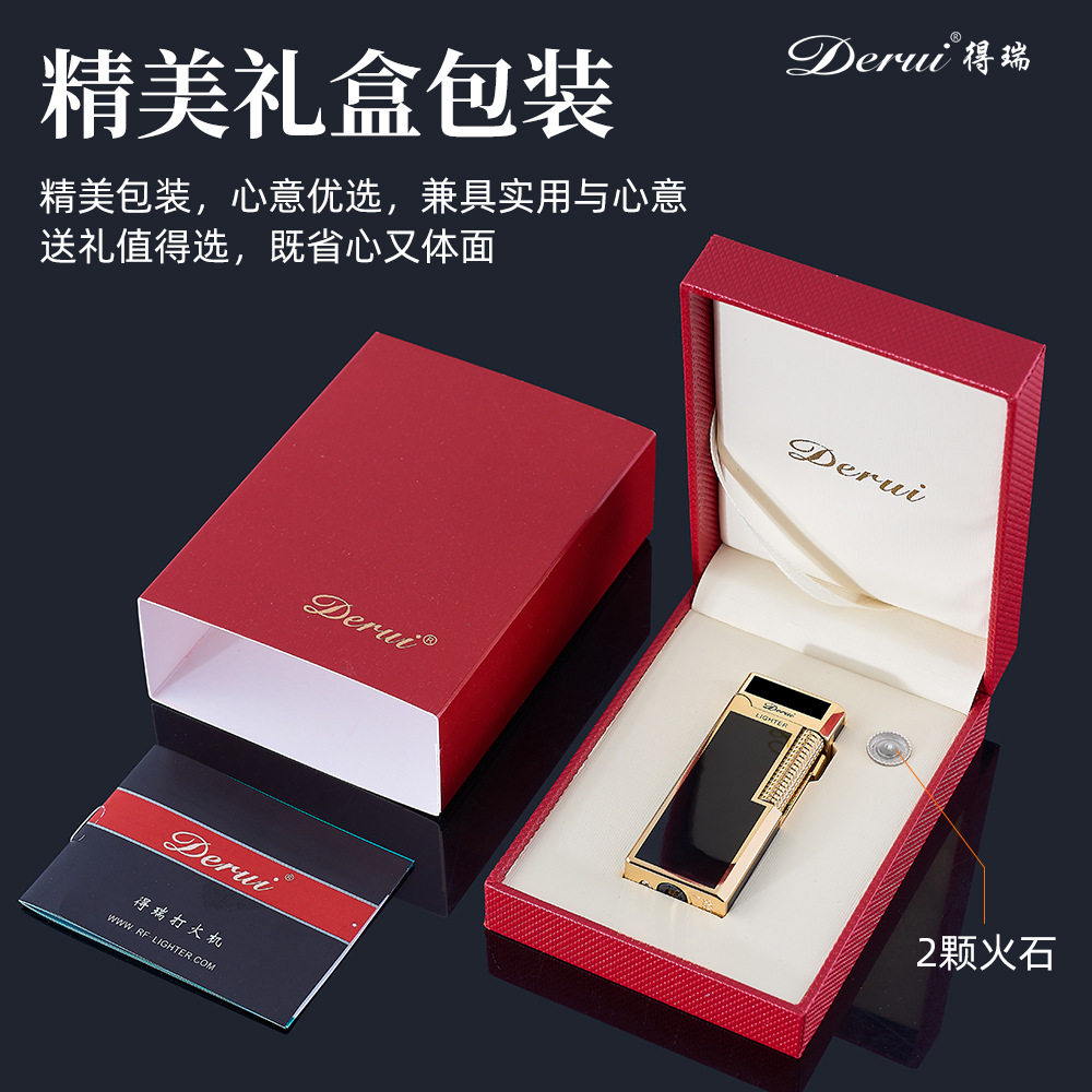 淘宝Derui德瑞窄版可充气双火焰个性创意侧滑砂轮男士高档礼品打火机