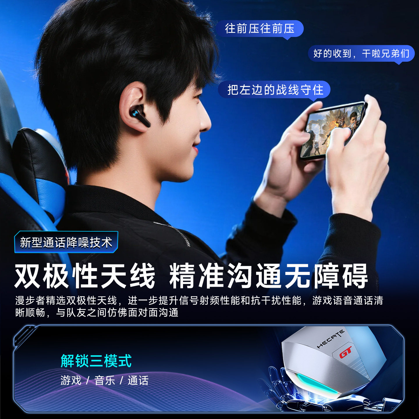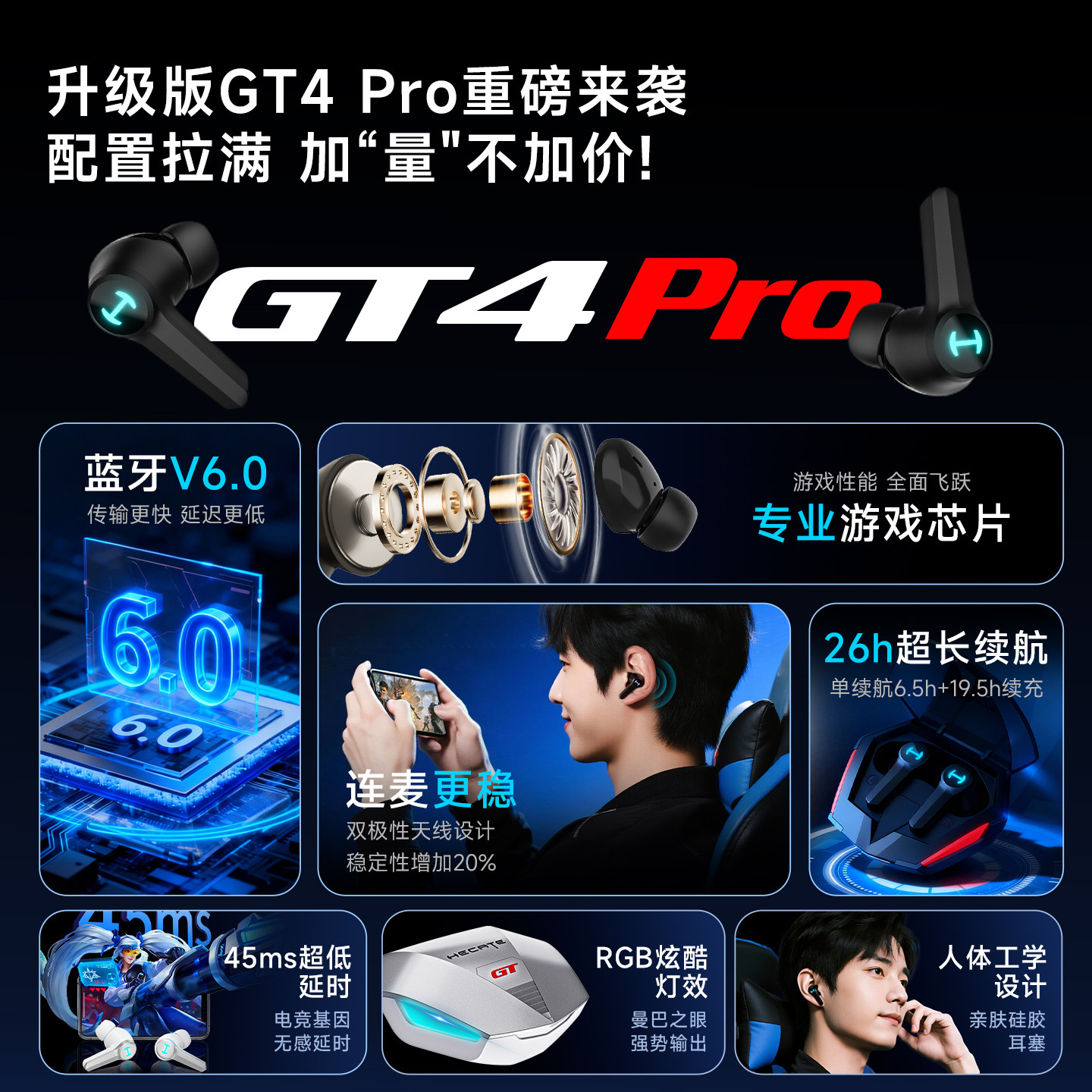 天猫漫步者GT4 PRO真无线入耳式蓝牙耳机游戏电竞专用降噪低延迟运动