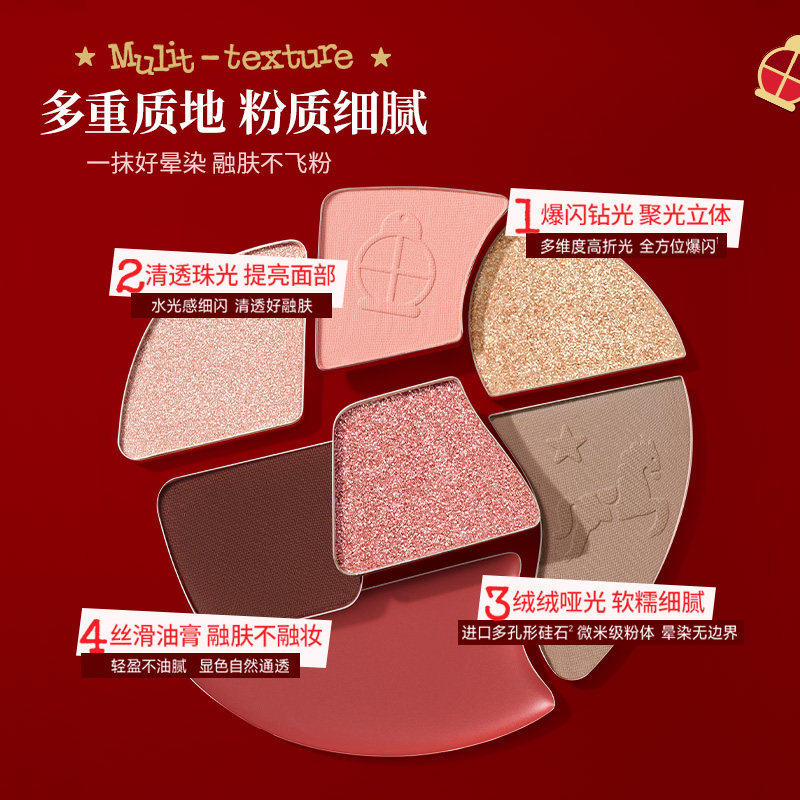 【马年限定】Colorkey珂拉琪眼影盘,融合东方美学与现代彩妆艺术,专为新年打造。盘内精选12款哑光与微珠光色调,涵盖大地、玫瑰与金棕系,轻松驾驭日常通勤与节日派对妆容。细腻粉质顺滑易晕染,显色度高且不飞粉,兼具眼影、腮红、高光与修容四效合一,一盘搞定全脸妆容。特别融入马年元素设计,外盒精致典雅,寓意“一马当先,好运相随”。无论是自用还是送礼,都是新年不可或缺的彩妆佳品,展现自信闪耀的东方之美。