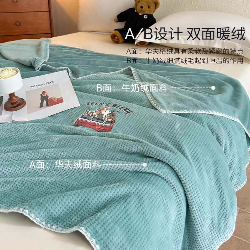 淘富安娜双层加厚保暖拉舍尔毯法兰绒毛毯卧室双人被子绒毯床单毯子