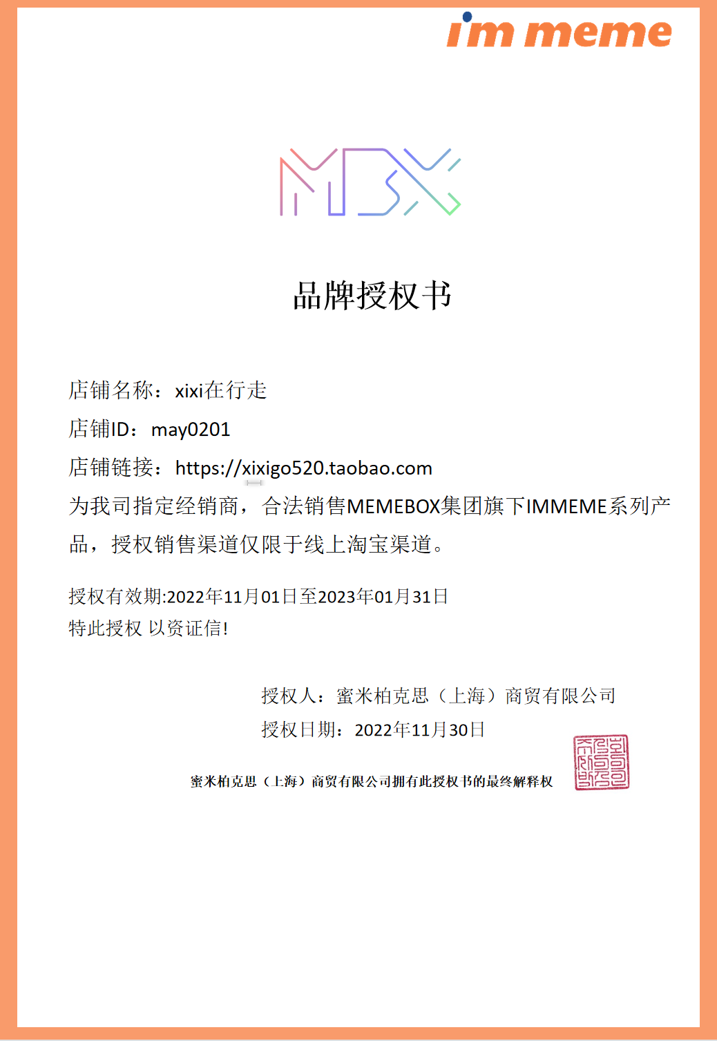 | 淘宝店铺: | XIXI在行走 |