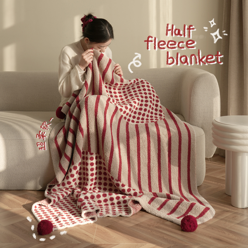 天猫纳茉|糖豆系列半边绒毛毯秋冬盖毯卧室客厅沙发毯办公室午睡毯