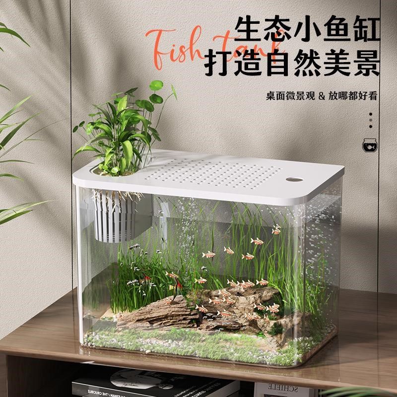 淘鱼缸水族箱小型家用生态桌面金鱼缸塑料透明客厅茶桌懒人造景鱼缸