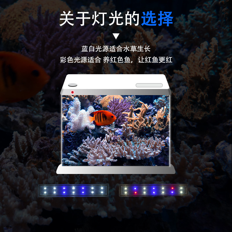 天猫森森佳璐格池鱼缸水族箱防水LED灯管蓝白彩色水草灯增色灯直板灯