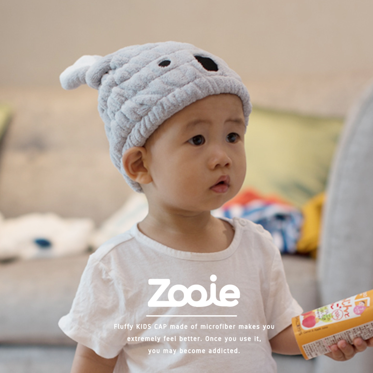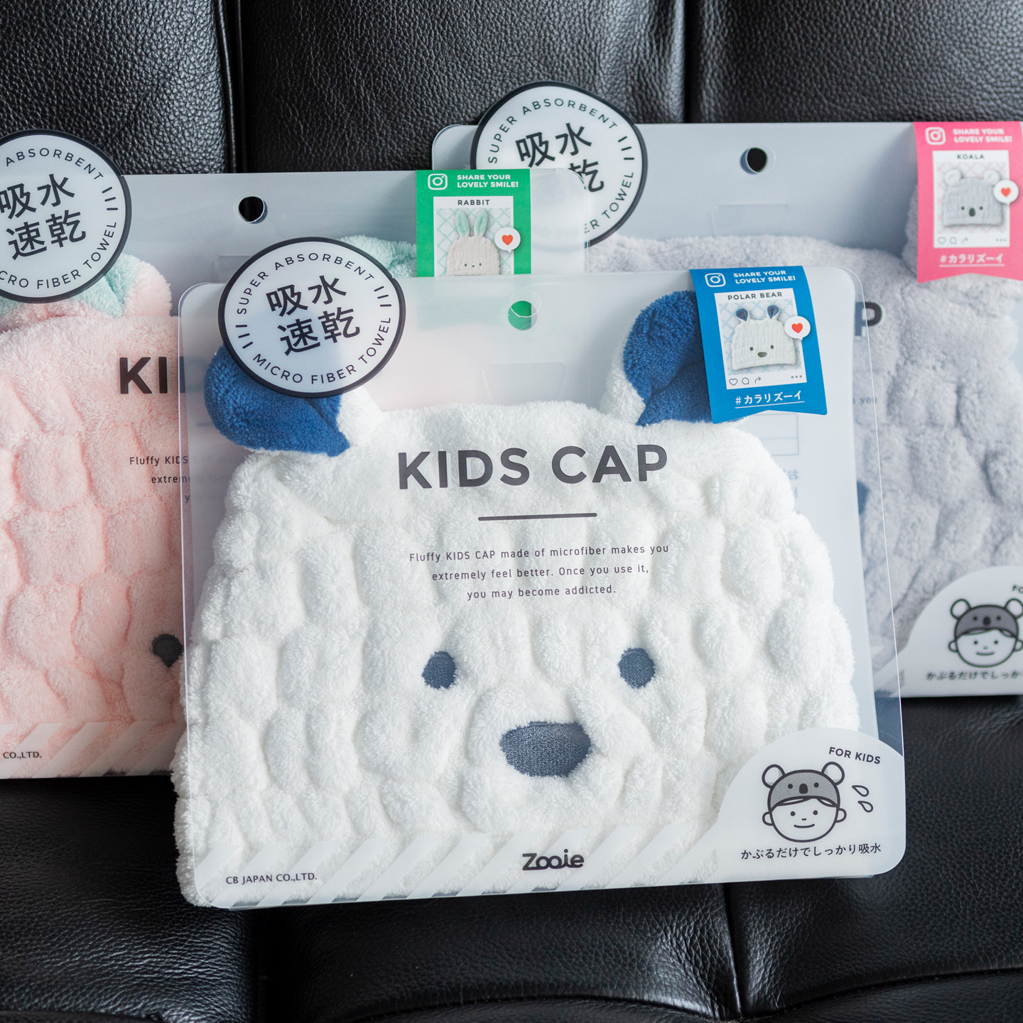 淘宝日本进口zooie考拉北极熊兔卡通干发帽可爱吸水速干帽儿童女浴帽