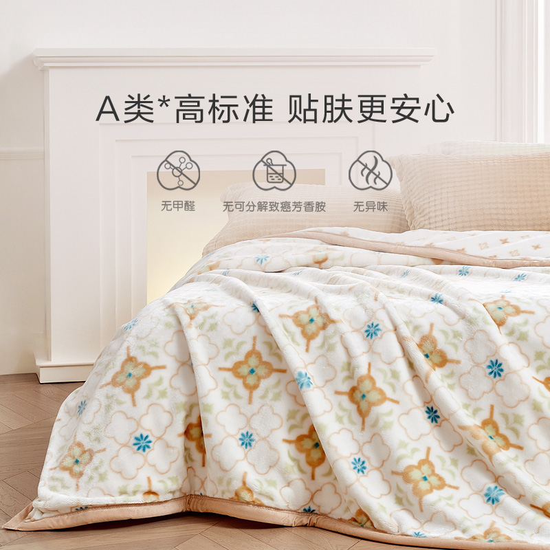 天猫罗莱家纺秋冬加厚沙发毯子毛毯双人床午睡毯床单绒毯双层拉舍尔毯