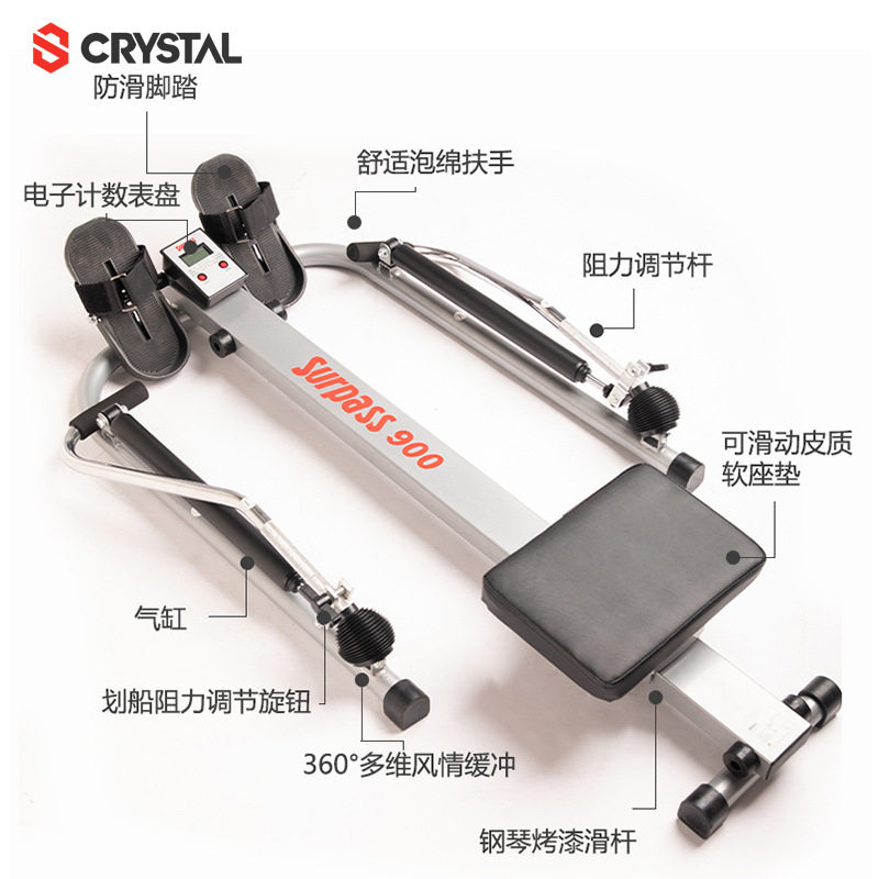 淘宝水晶CRYSTAL划船机家用非水阻液压划船器多功能可折叠双桨划船