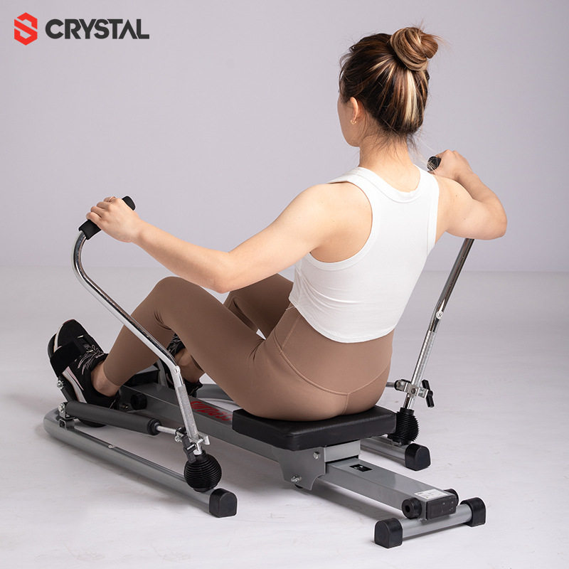 水晶CRYSTAL家用划船机采用创新液压阻力系统,模拟真实划船体验,静音流畅,适合全家锻炼。双桨设计增强运动协调性,有效锻炼背部、手臂、核心及腿部肌肉。机身结构稳固,承重能力强,同时支持一键折叠,节省空间,轻松收纳。配备多功能电子表,实时显示时间、次数、卡路里等数据,助力科学健身。无需加水,免维护,使用便捷。无论是减脂塑形还是提升心肺功能,水晶CRYSTAL划船机都是居家健身的理想选择,让您足不出户享受专业级划船训练。