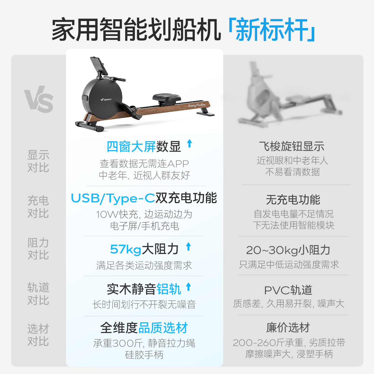淘划船机折叠家用商用智能木质划船器直杠可折叠有氧运动健身器材