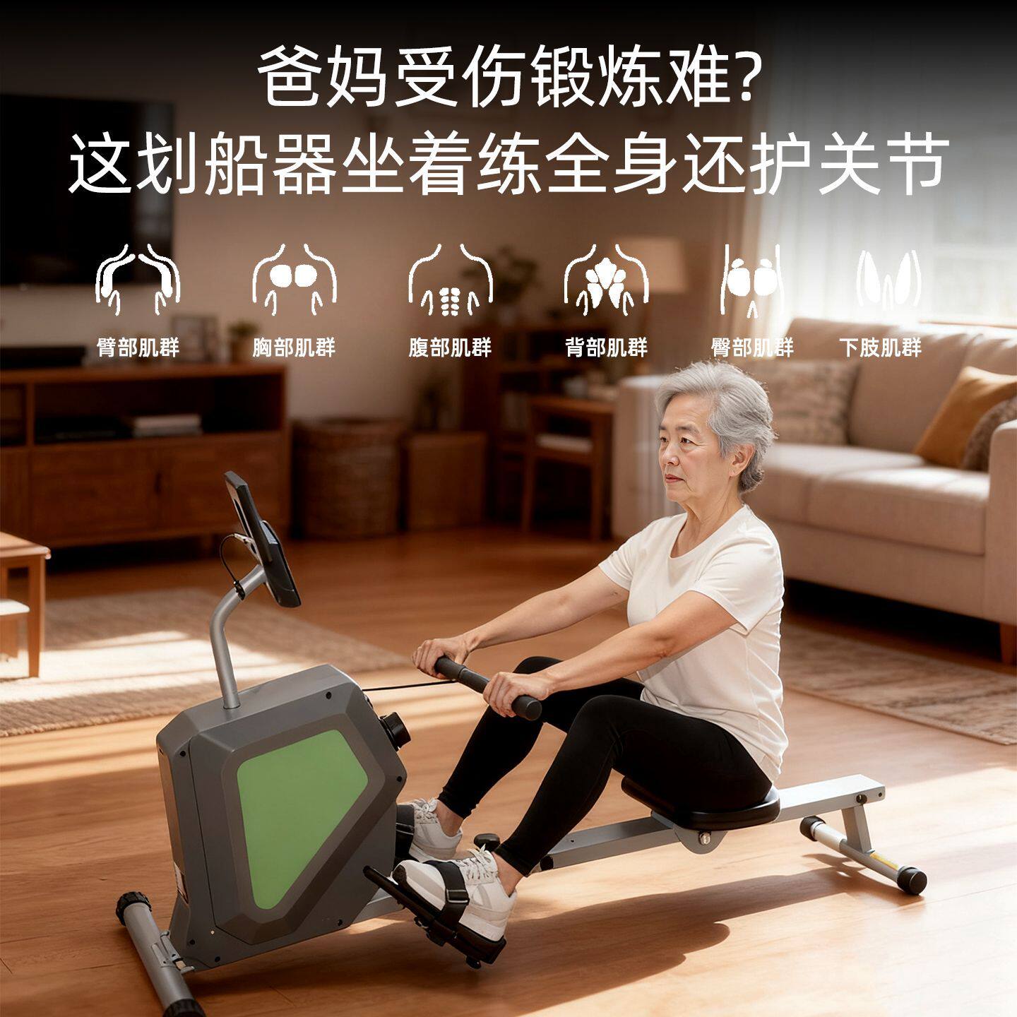 超士中老年划船机豪华款专为家庭用户设计,尤其适合中老年人群进行全身有氧训练。采用磁控静音阻力系统,运行平稳安静,不扰家人;配备宽大舒适座椅与可调节脚踏,贴合人体工学,保护膝盖与腰椎。12档阻力调节,满足不同体能需求,有效锻炼心肺功能、增强肌肉耐力。LCD显示屏实时显示时间、距离、卡路里等数据,助力科学健身。机身结构稳固,承重强,折叠设计节省空间,居家使用便捷安全。无论是日常锻炼还是康复训练,这款划船器都是提升健康品质的理想选择。