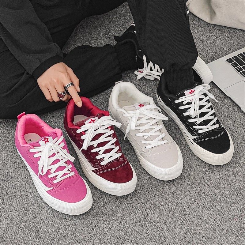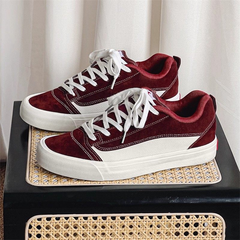 淘宝美式复古面包鞋子男2025秋冬季酒红色帆布鞋男低帮百搭休闲板鞋