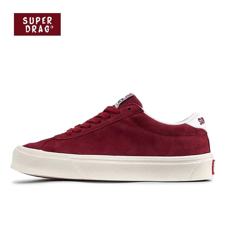 淘宝超拽SUPERDRAG 酒红翻毛皮街头复古帆布鞋男女低帮耐磨运动滑板鞋