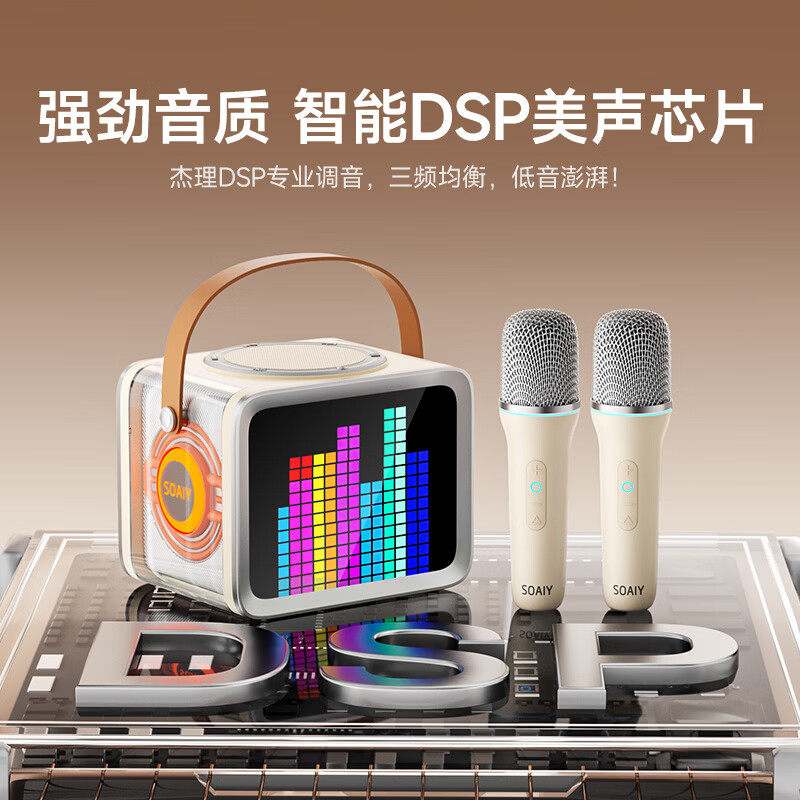 索爱SK15PRO家用K歌麦克风音响话筒一体唱歌机,集专业麦克风、蓝牙音响与卡拉OK功能于一体,打造家庭KTV娱乐新体验。内置高灵敏度电容麦头,搭配智能降噪与混响调节技术,音质清晰饱满,轻松还原真实演唱效果。支持蓝牙5.0无线连接,兼容手机、平板、电视等多种设备,即连即唱。配备双喇叭立体声系统,低音浑厚、高音清亮,营造沉浸式K歌氛围。内置大容量电池,续航持久,支持U盘播放、TF卡读取及有线伴奏输入,功能丰富。无论是家庭聚会、朋友欢唱还是亲子互动,索爱SK15PRO都能带来专业级娱乐享受,让快乐随歌而行。