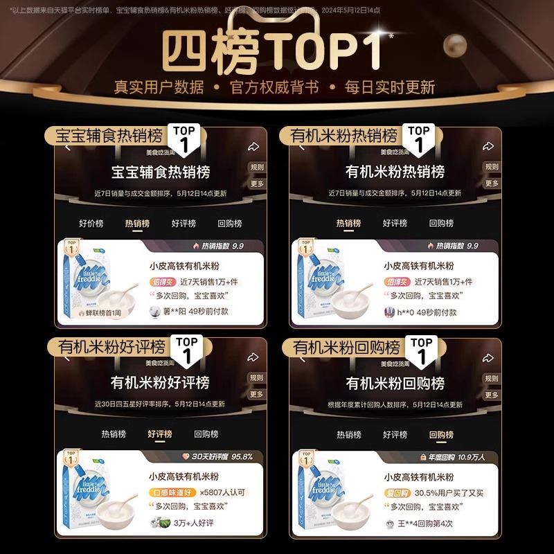 淘宝小皮婴幼儿双有机高铁米粉低敏初添营养宝宝辅食米糊米粥官方正品