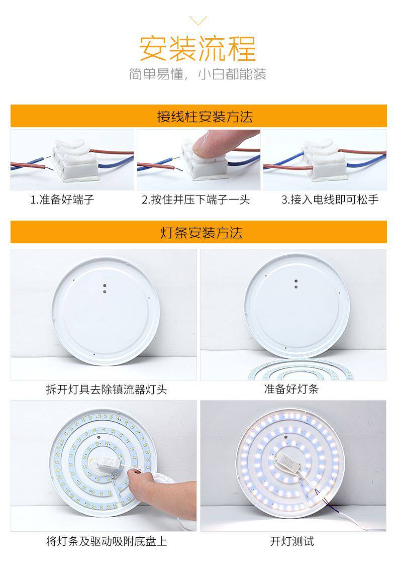LED替换灯条、长条吸顶灯灯芯、风扇灯改造灯板、灯带、透镜改造灯管及贴片等,是现代照明升级的高效解决方案。这些产品采用高亮LED芯片,节能环保、寿命长达5万小时以上,广泛用于家居、办公室及商业场所。灯条和灯带安装便捷,可灵活裁剪,适配多种灯具结构;透镜改造灯管提升光线均匀度与照射效果;贴片设计则便于嵌入原有灯槽,实现无缝替换。特别适用于老旧荧光灯管或传统吸顶灯的智能化、节能化改造,无需更换整套灯具即可焕然一新,兼具美观与实用性,是绿色照明升级的理想选择。