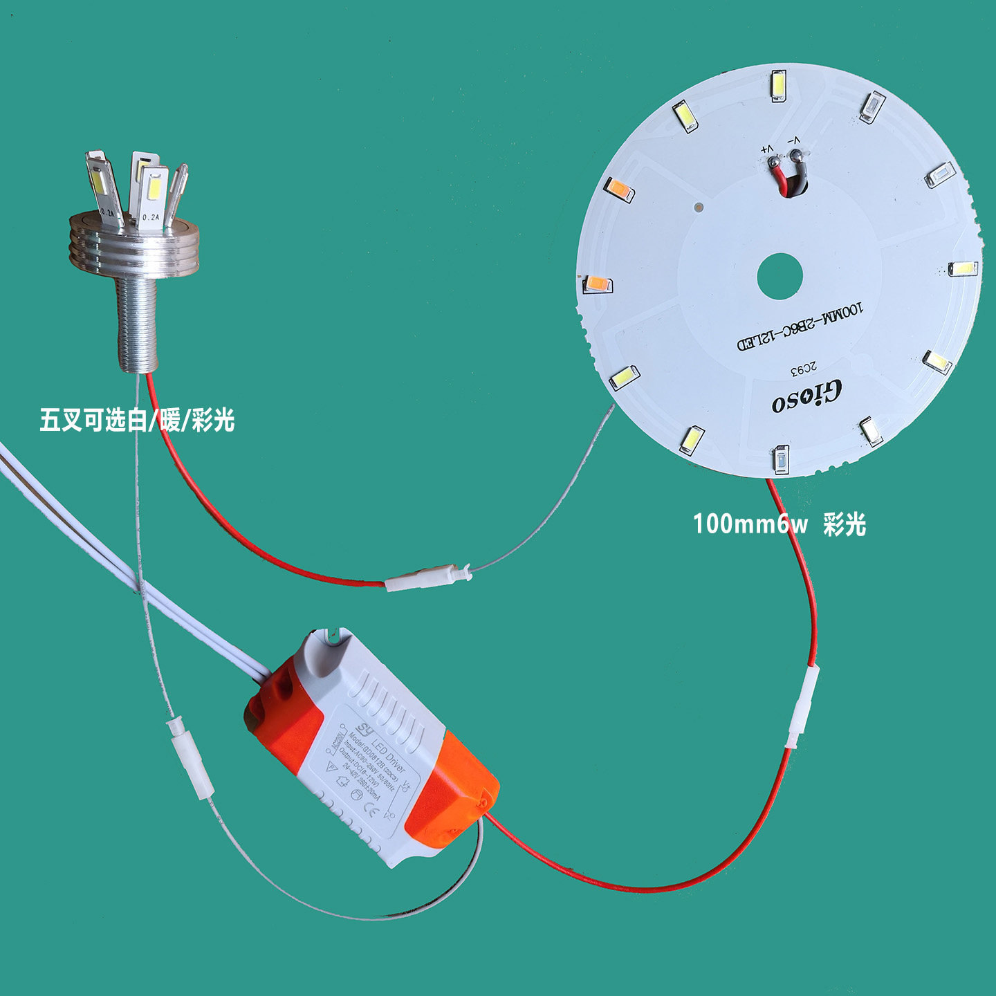 淘宝led灯片圆形3w5W三叉五叉灯芯替换走廊灯过道灯板光源彩色5730