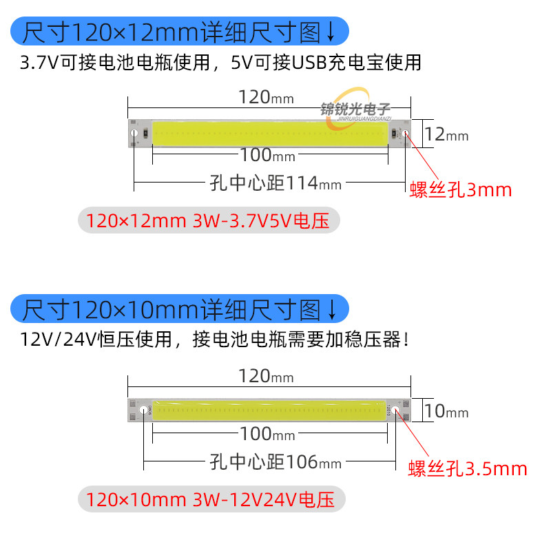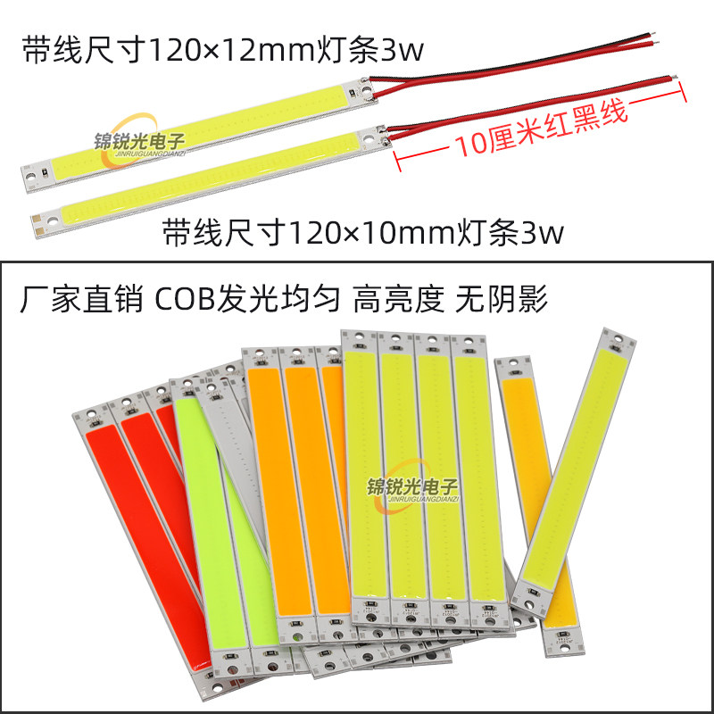天猫3w长条灯板cob光源led电池灯3.7v5v机器设备diy改造照明灯12伏24v
