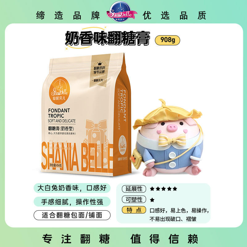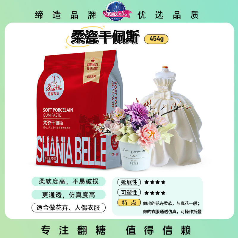仙妮贝儿糖牌干佩斯是一款高品质的翻糖材料,包含454克防水干佩斯和100克专用糖皮,适用于制作翻糖蛋糕、人偶、花卉等精美装饰。其质地细腻柔韧,延展性强,易于塑形,可轻松擀压成薄片或塑造成复杂造型。防水配方确保成品在潮湿环境中不易变形,色彩稳定,适合长时间展示。无论是专业烘焙师还是手工爱好者,都能用它创作出逼真细腻的花朵、人物和立体装饰。产品安全可塑,操作简便,是打造梦幻蛋糕和节庆甜点的理想选择,让每一份甜点都充满艺术气息与甜蜜惊喜。