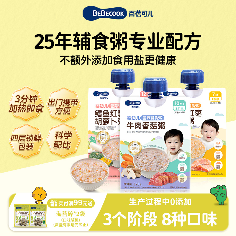 天猫BEBECOOK婴幼儿辅食粥7月10月+1岁2岁宝宝外出即食面条锁鲜米粉粥