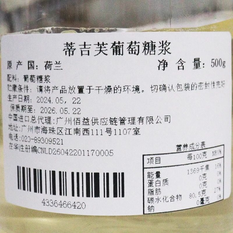 迪吉福DGF葡萄糖浆500g是一款优质的烘焙原材料,专为家庭烘焙爱好者和专业西点师设计。精选优质原料制成,质地清澈透明,甜度适中,具有良好的流动性和稳定性,广泛用于蛋糕淋面、饼干夹心、软糖制作及各类甜品装饰。其高保湿性可有效延长糕点保质期,保持口感柔软。适用于制作马卡龙、慕斯、布丁等多种西点,操作简便,易于与其他食材融合。500g家庭装规格适中,密封性好,方便储存。无论是新手还是烘焙达人,迪吉福DGF葡萄糖浆都能为您的甜品增添光泽与美味,是居家烘焙的理想之选。