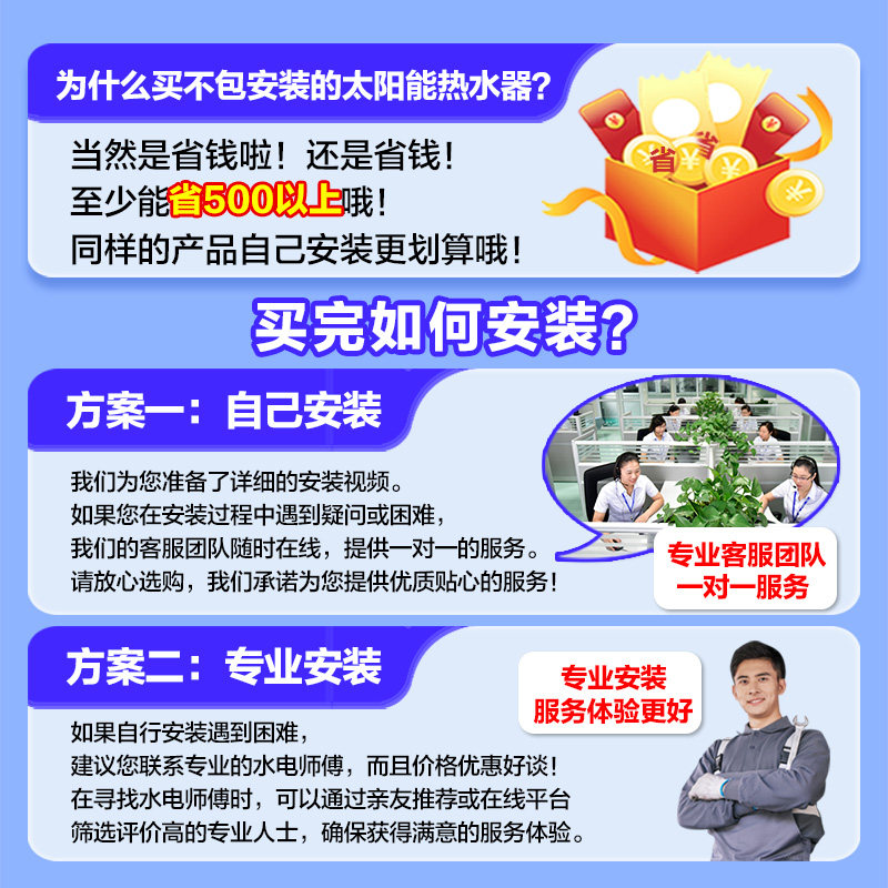 淘【全国包安装】新型太阳能热水器全智能电加热全不锈钢保温桶质保