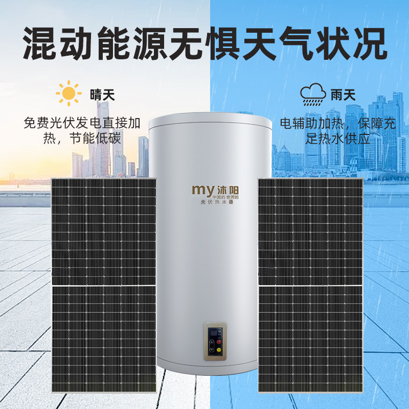 天猫沐阳家用光伏热水器光伏直流发电太阳能光电两用省电节能