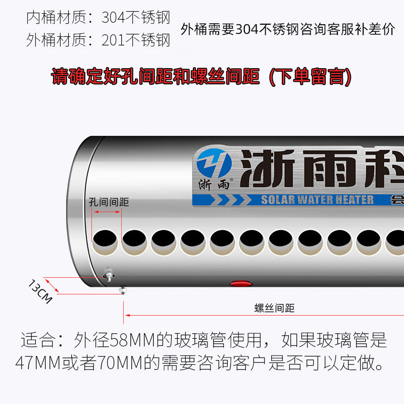 淘太阳能保温桶热水器水箱储水桶加厚16-36管食品级304不锈钢内胆