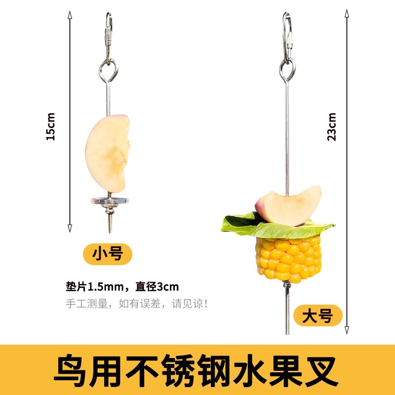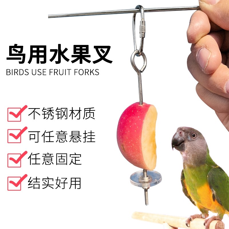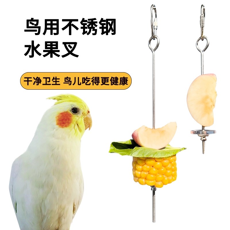 淘宝鹦鹉不锈钢水果叉玉米苹果叉宠物鸟用品可挂玩具鸟类喂食器配件