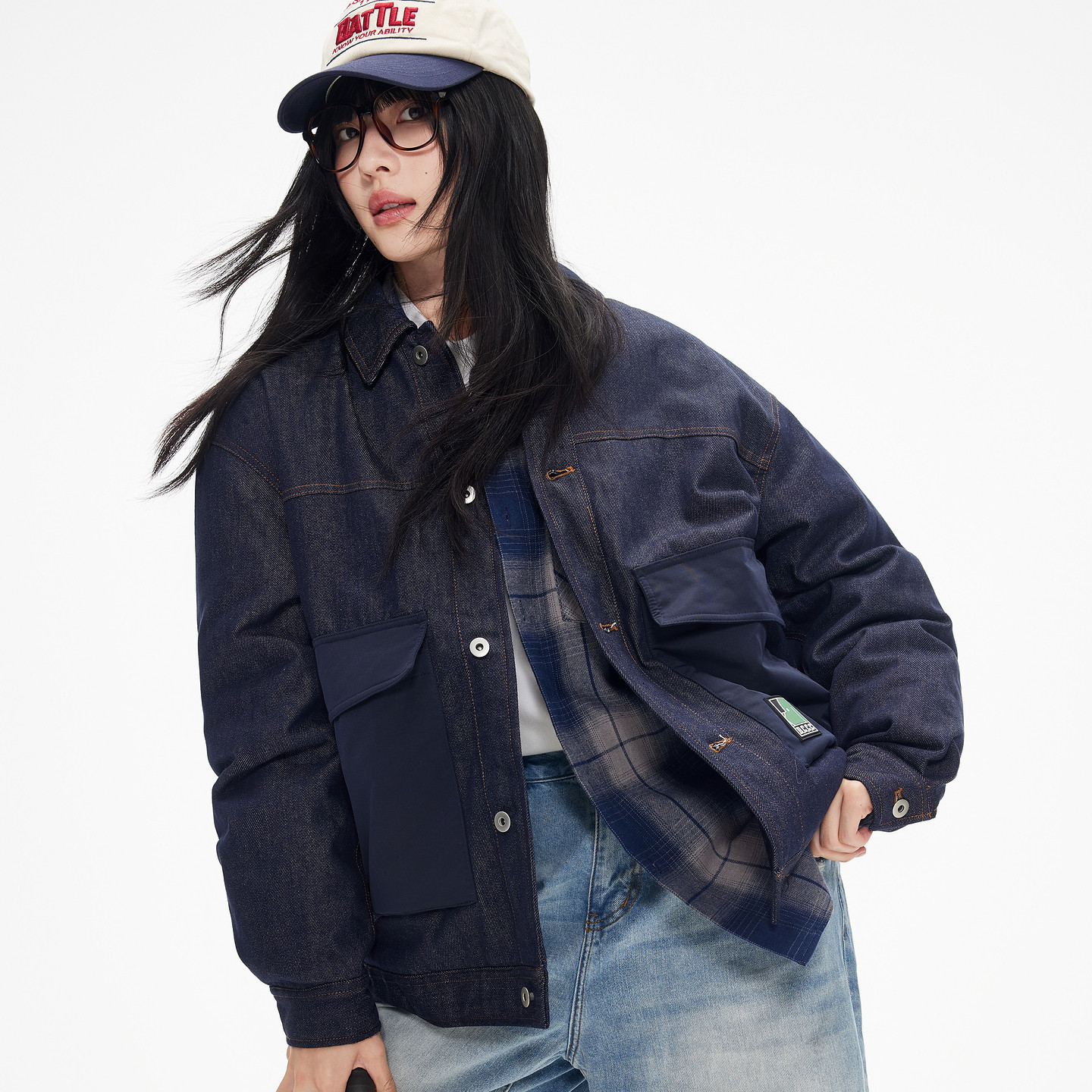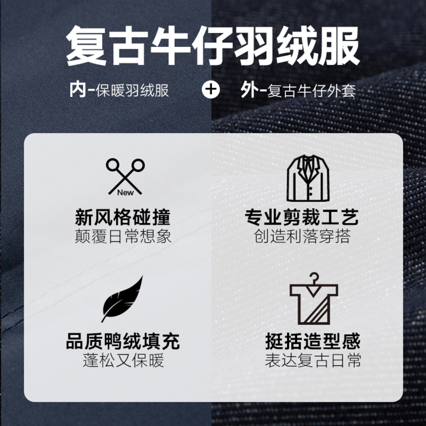 天猫【羽绒内里】gxgjeans男装 蓝色轻薄款牛仔翻领羽绒服外套男 25冬