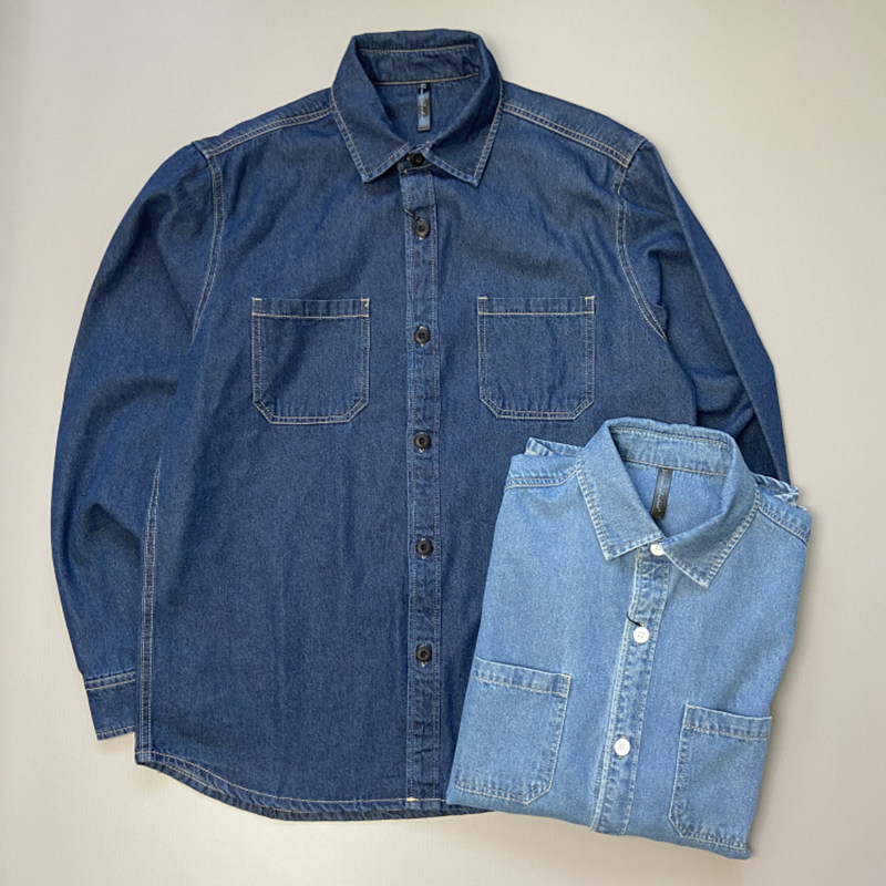 【丹宁】冬季牛仔长袖男衬衫日系复古内搭衬衣休闲工装男士外套