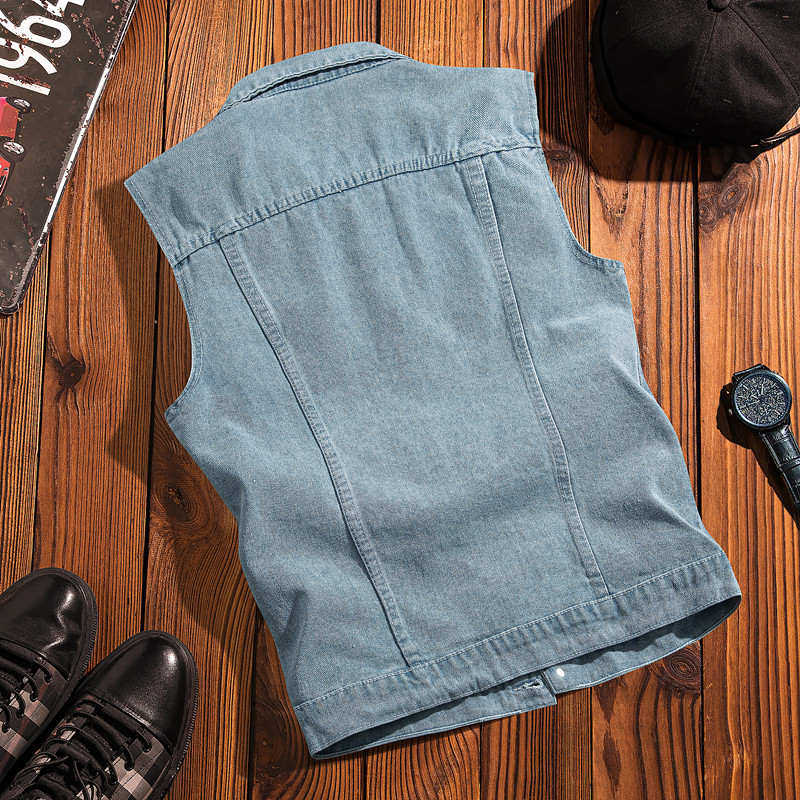 这款港风复古坎肩背心马甲,融合韩版休闲与痞帅潮流元素,专为追求个性的学生党与年轻男士打造。采用经典牛仔面料,做旧破洞设计增添不羁质感,无袖版型利落百搭,轻松叠穿T恤、衬衫或卫衣,轻松驾驭街头、校园等多种场景。宽松剪裁兼顾舒适与型格,复古水洗色调彰显怀旧港风韵味,同时不失现代时尚感。无论是搭配工装裤、束脚裤还是牛仔裤,都能轻松穿出层次与态度,是打造痞帅男友风、cityboy风格的必备单品,实用又吸睛,轻松成为穿搭焦点。