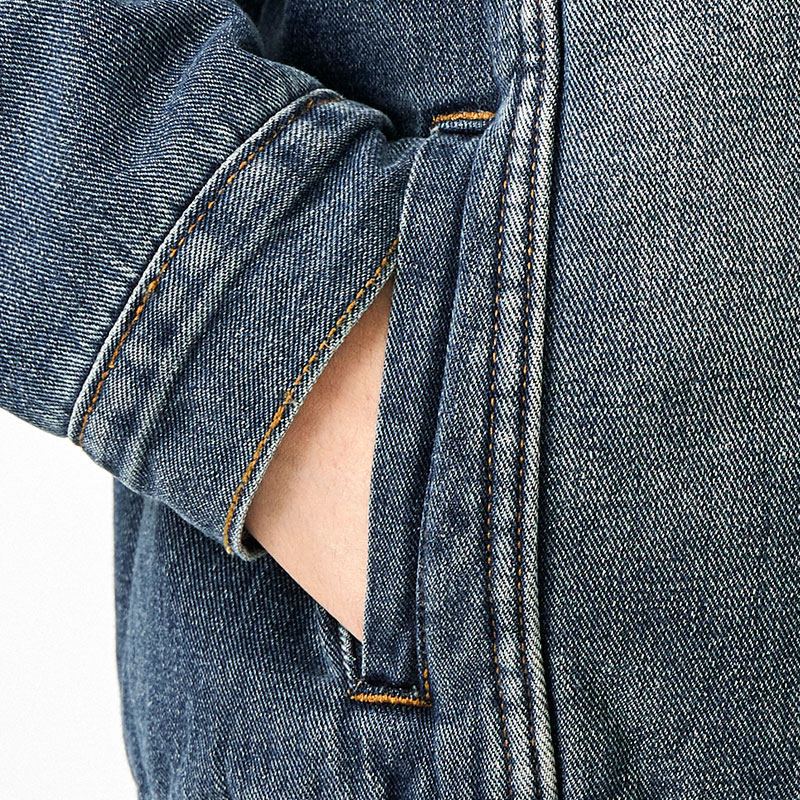 这款冬季水洗复古加绒牛仔外套,专为男士秋冬保暖设计,融合经典复古水洗工艺与现代实用功能。采用高品质加厚牛仔面料,内里加绒处理,柔软亲肤,锁温保暖,轻松应对寒冷天气。宽松版型设计,穿着舒适不束缚,适合多种体型。多口袋实用布局,兼顾美观与储物需求。无论是搭配毛衣、卫衣还是内搭衬衫,都能轻松打造街头潮流或休闲通勤风格。细节精致,走线工整,彰显品质感。是秋冬季节不可或缺的保暖外套,兼具时尚与实穿性,适合日常出行、户外活动等场合,尽显型男魅力。
