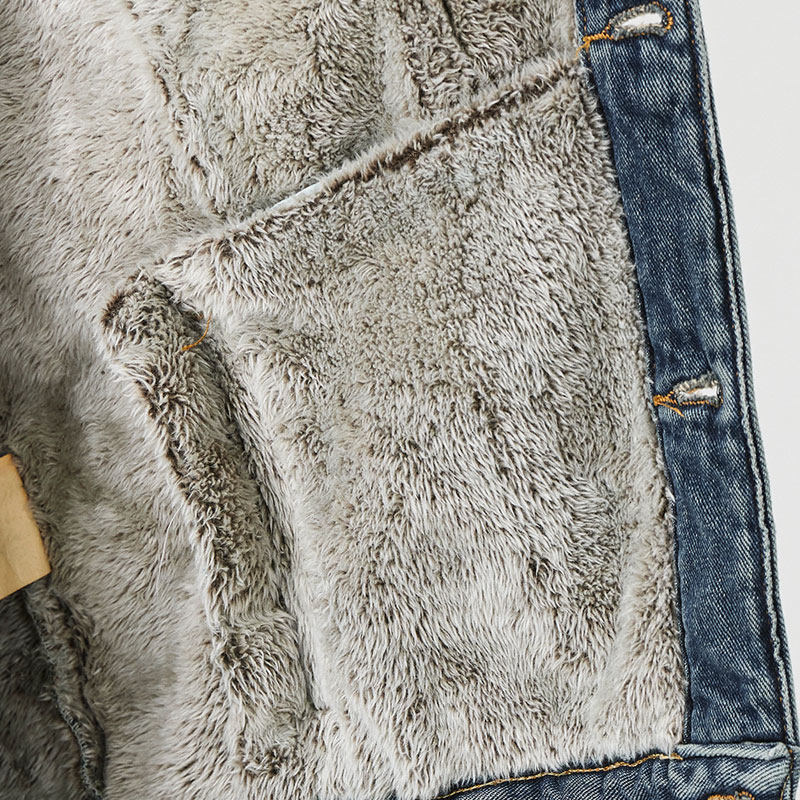 天美式复古水洗牛仔座山雕外套男冬季廓形毛绒棉服短款立领工装棉衣