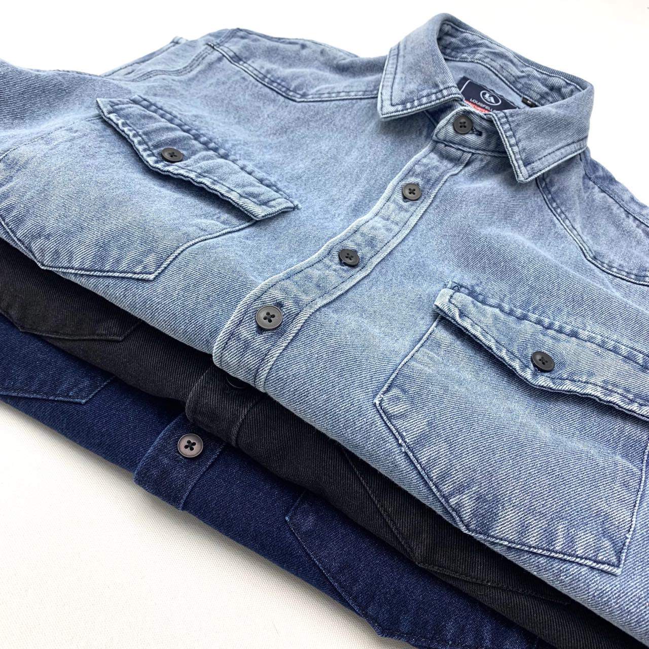 【丹宁】冬季牛仔长袖男衬衫日系复古内搭衬衣休闲工装男士外套