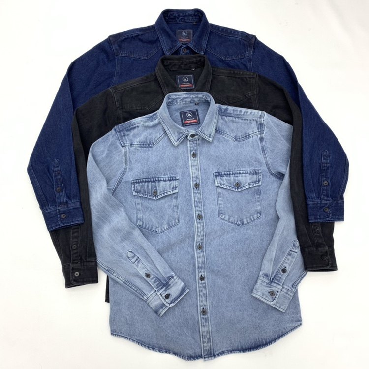 淘炒经典 16盎司100棉重水洗秋季男士休闲长袖牛仔衬衫薄夹克外套潮