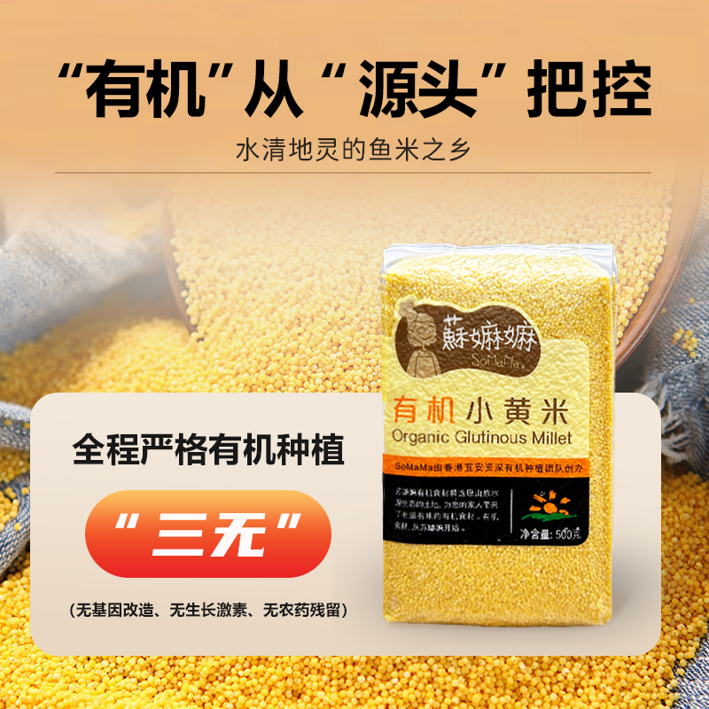 天猫苏嫲嫲有机小黄米宝宝专用新米香糯小米粥月子五谷杂粮真空装