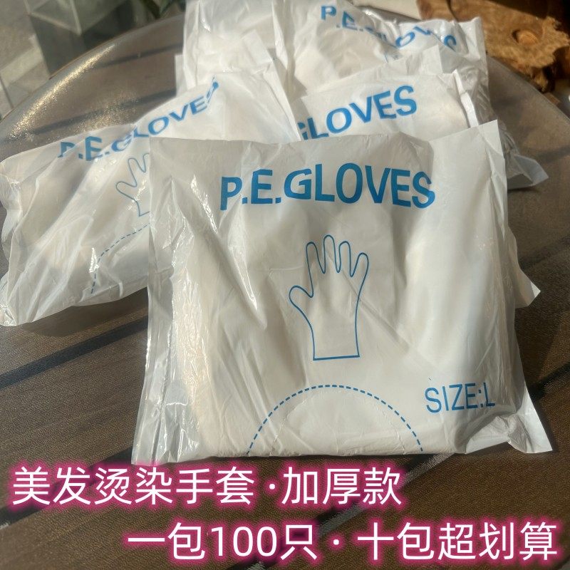 淘宝一次性手套理发店美发工具塑料透明加厚耐用美发用品染发手套加厚