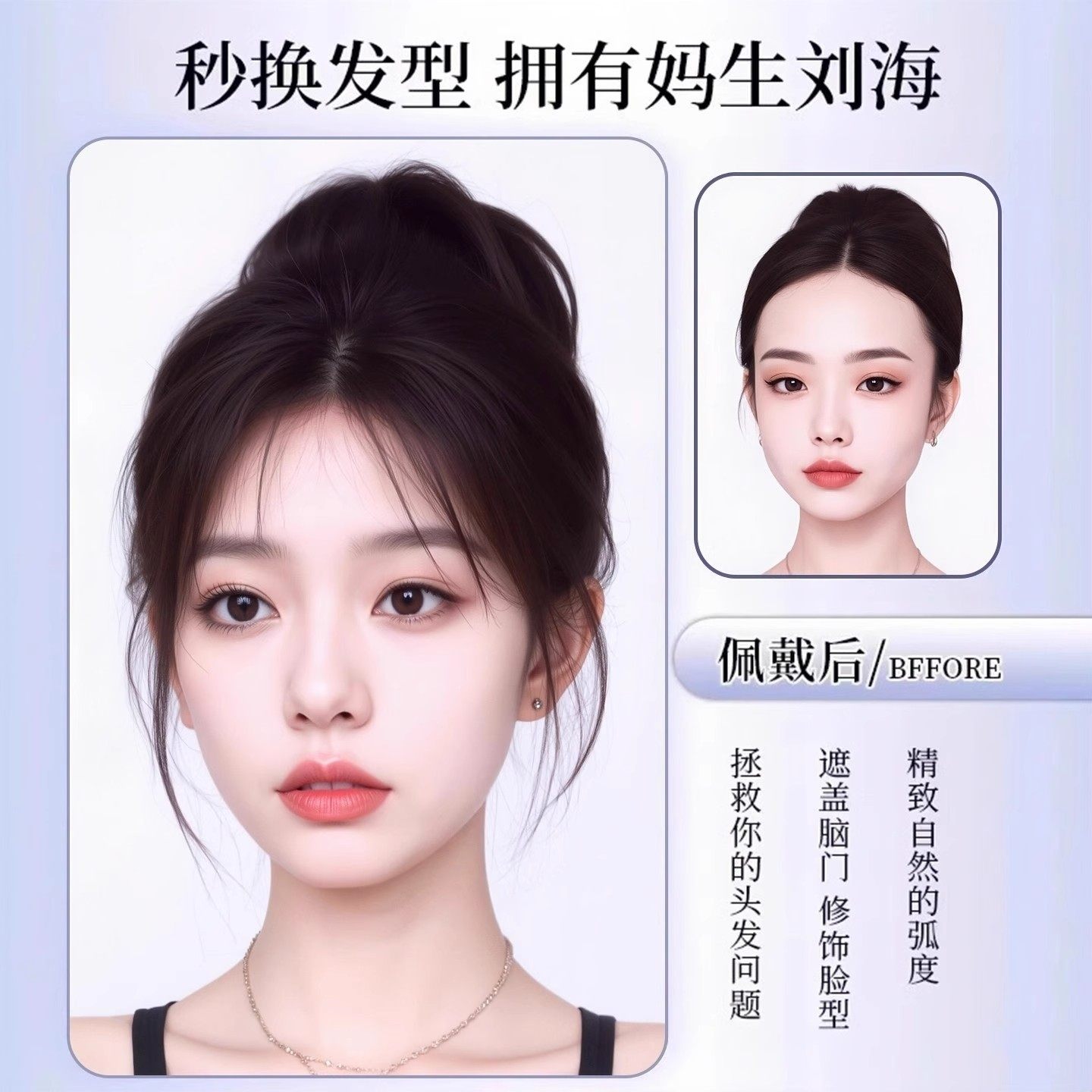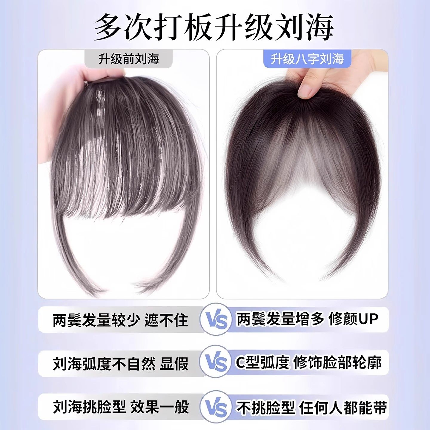 淘宝八字刘海假发片女自然前额头顶补发真发轻薄空气蓬松假刘海遮白发