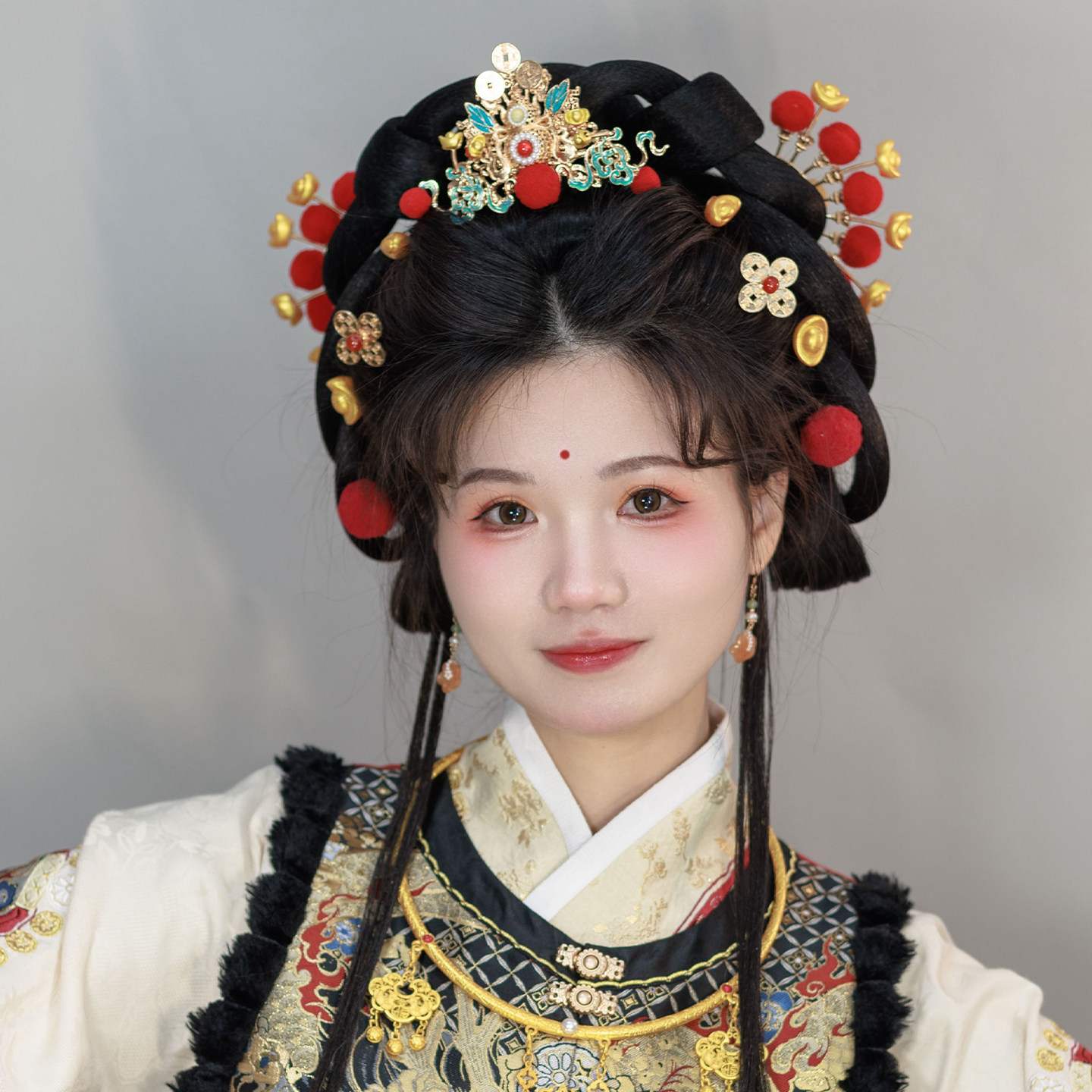 新年喜庆可爱少女造型假发头饰套装,专为节日与古风拍摄设计,融合传统与现代美学。套装包含精致假发,打造蓬松灵动的古风发髻,搭配轻盈抱面发排,修饰脸型,尽显温婉气质。头饰采用喜庆红色调,点缀珠花、流苏与吉祥纹样,寓意新年好运。整体造型适配汉服穿搭,轻松营造甜美俏皮的少女形象,无论是春节拜年、节日写真还是汉服活动,都能成为焦点。佩戴便捷,舒适透气,是追求古风美感与节日氛围的完美选择,让每位少女在新年闪耀动人光彩。