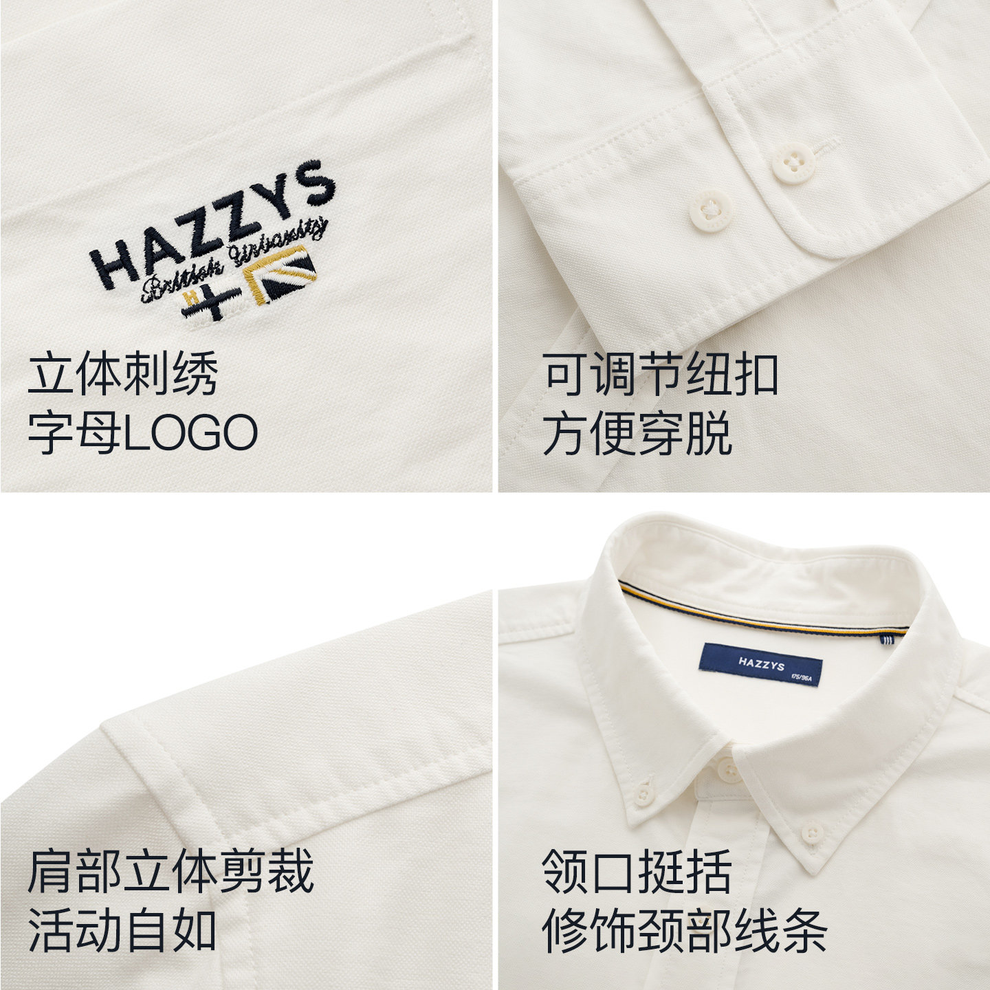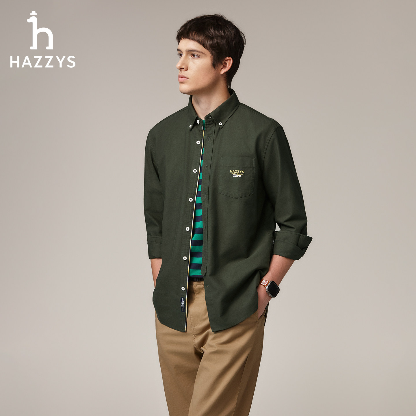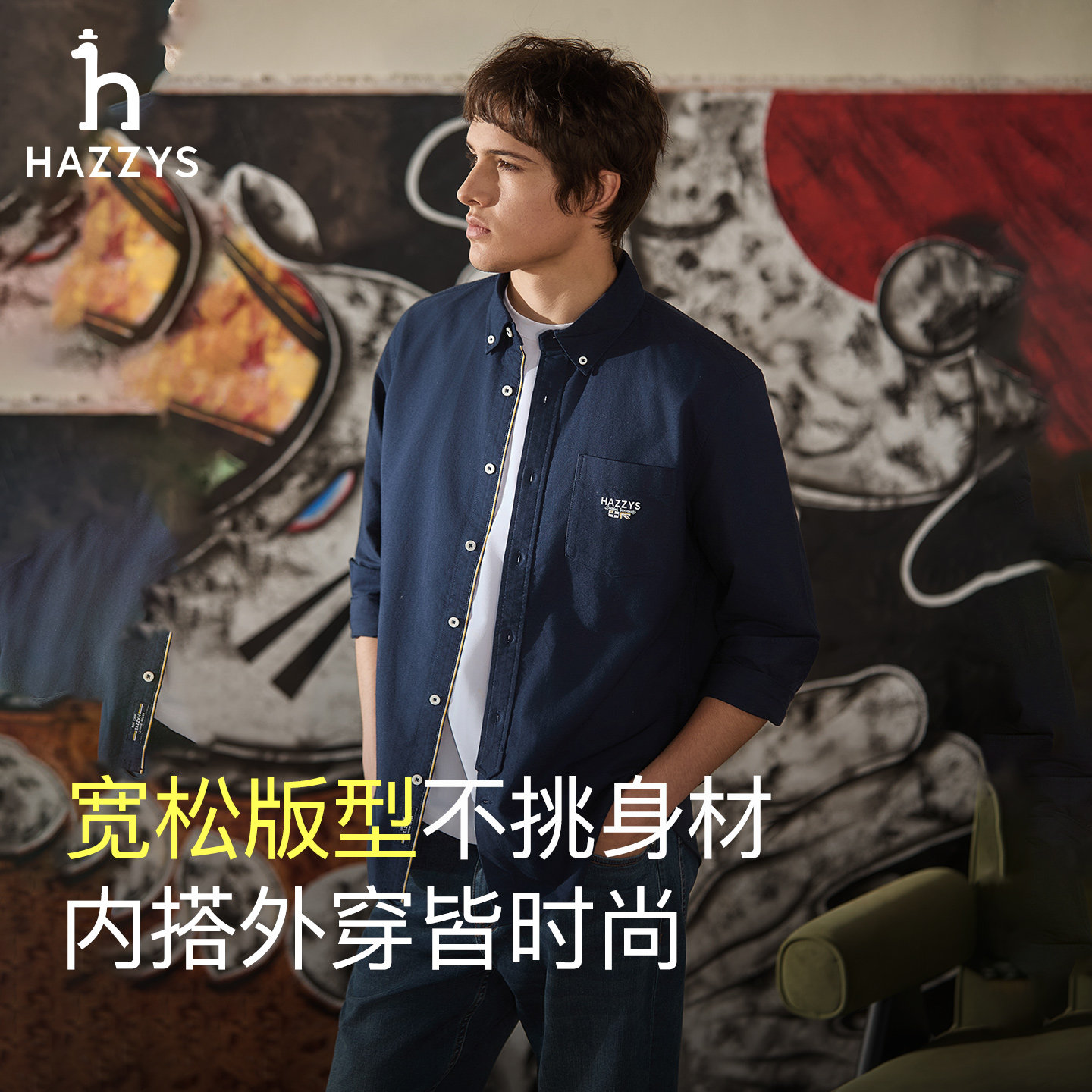 天猫【秋季甄选】Hazzys哈吉斯男士衬衣休闲宽松纯棉长袖牛津纺衬衫潮