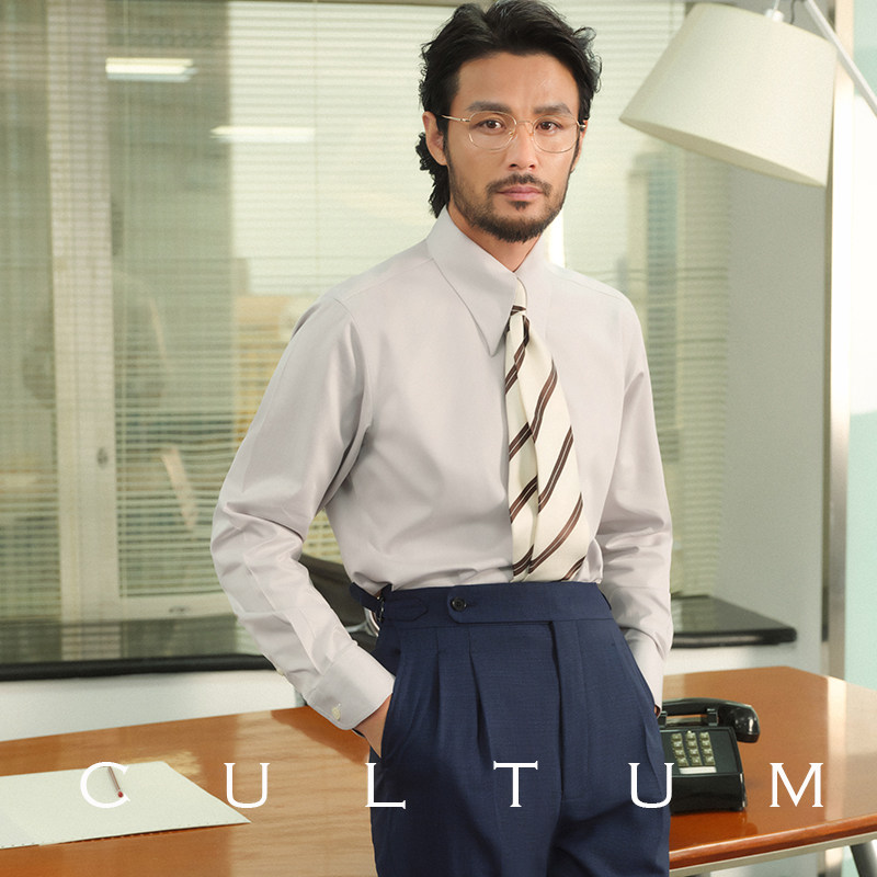 CULTUM100支双股纯棉温莎领长袖衬衫DP免烫抗皱男法式袖口衬衣