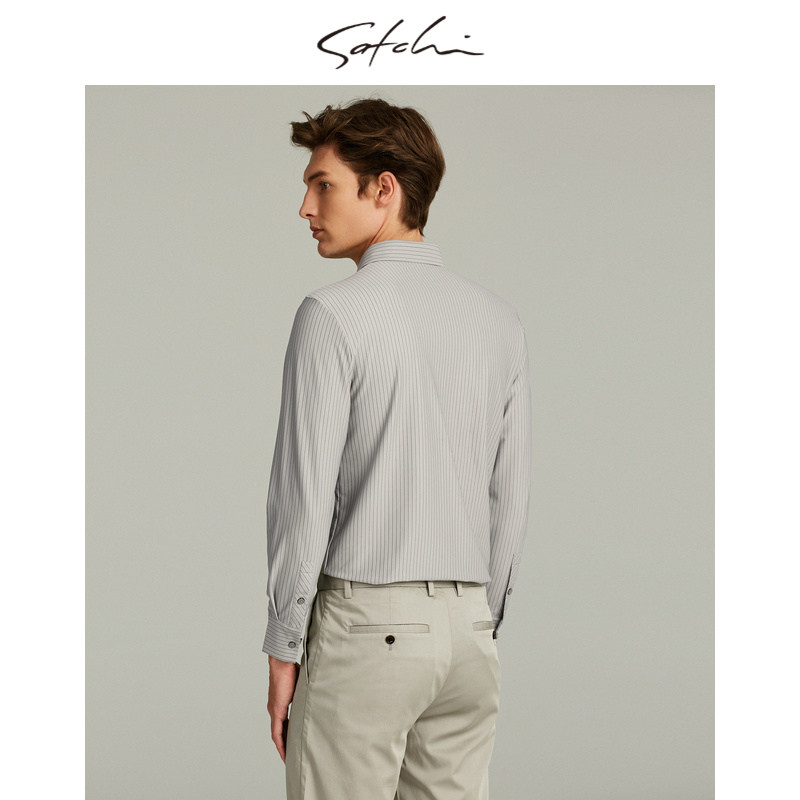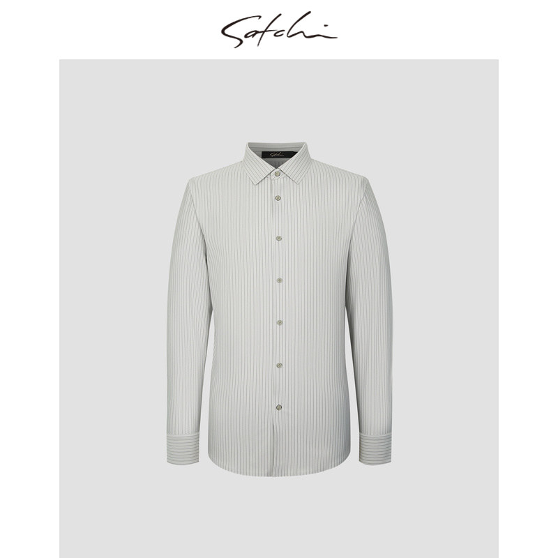天猫SATCHI沙驰男装商场同款男士长袖衬衫条纹高级衬衣88RAA8415007
