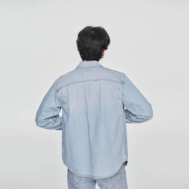 天设计师款佐丹奴牛仔衬衫男洗水单口袋宽松长袖牛仔衬衣男18045803