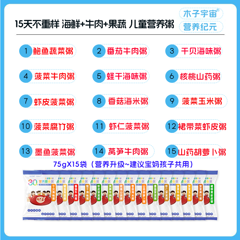 淘宝75克宝宝营养辅食粥胚芽米粥不重样宝宝儿童五谷杂粮海鲜果蔬牛肉
