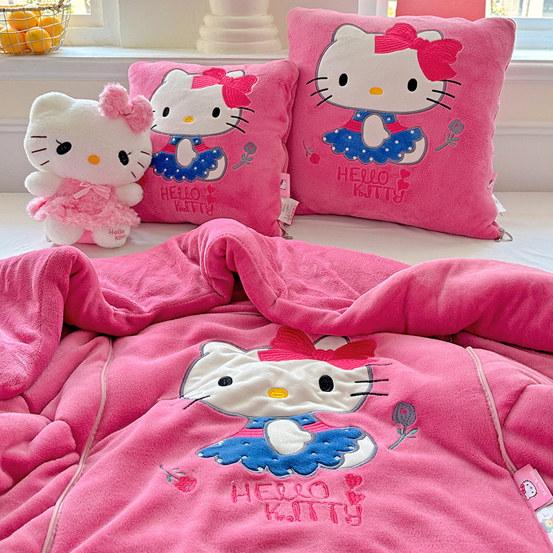 淘保暖绣花牛奶绒车载多功能二合一抱枕被两用办公室客厅沙发靠垫被