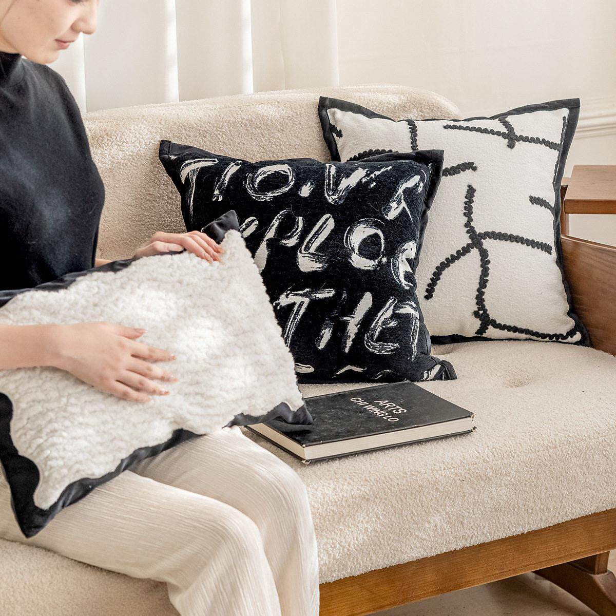 淘宝现代简约水墨风覆古沙发抱枕套客厅装饰靠枕床头靠垫床上腰靠民宿