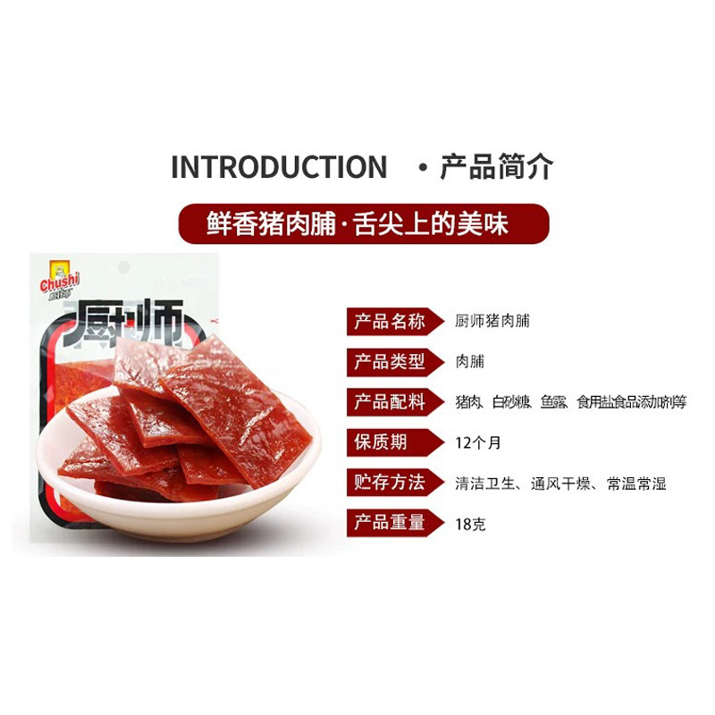 天猫厨师猪肉脯18g*10包福建特产休闲零食品即食猪肉干片猪肉脯小食