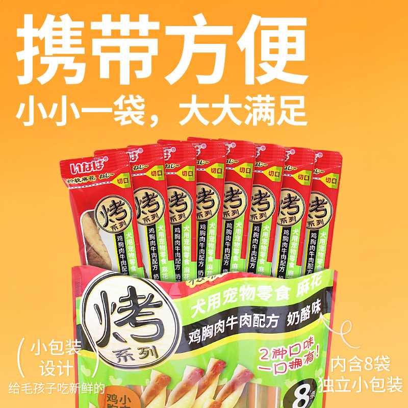 天猫狗零食肉干 伊纳宝麻花多口味磨牙训练鸡肉牛肉味肉条4包32条