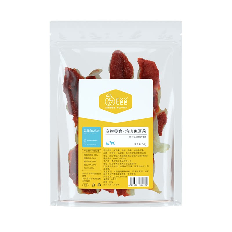 天猫汪爸爸狗狗零食鸡肉兔耳朵风干肉干宠物训练奖励大中小型犬磨牙棒